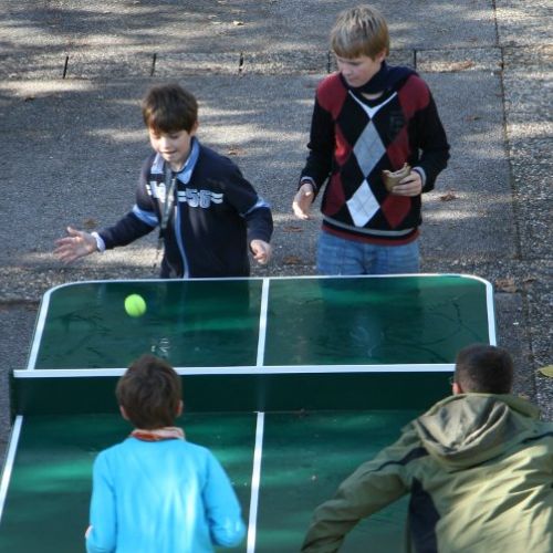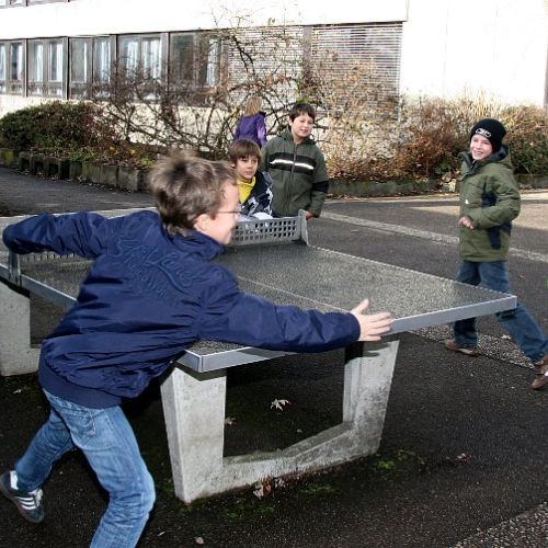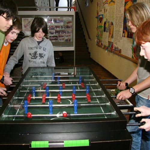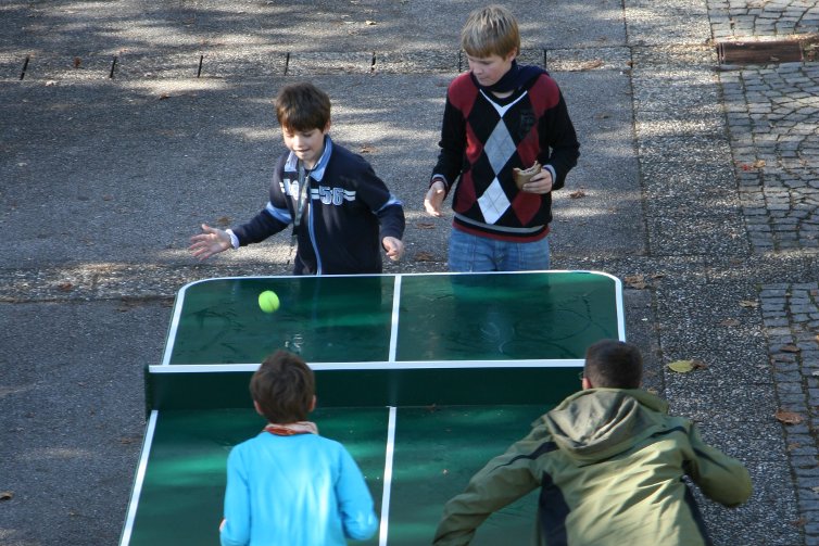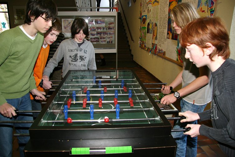 - kauft er für die Pausenbereiche Tischtennisplatten, Fußballkicker, ein Bodenschachspiel